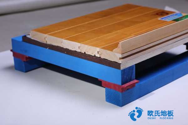 訓(xùn)練、教學(xué)類運(yùn)動(dòng)地板。相對(duì)競(jìng)技類,它的性能指標(biāo)要求相對(duì)偏低,其沖力吸收與標(biāo)準(zhǔn)垂直變形的指標(biāo)要求,分別是≥35%和≥1.0mm,是從制造成本而出發(fā)的。單層龍骨:由面板層、防潮層、毛地板、龍骨層和橡膠減震墊等部分組成的單式地板結(jié)構(gòu)。從經(jīng)濟(jì)角度出發(fā),它比較廉價(jià),此種類型的運(yùn)動(dòng)地板,內(nèi)部只有一層龍骨,頗具抗震的特性。單層龍骨結(jié)構(gòu)也是一種高性能的系統(tǒng)。具高吸震性和一致性的固定運(yùn)動(dòng)木地板系統(tǒng),良好的環(huán)境適應(yīng)性,造價(jià)相對(duì)較低。雙層龍骨:由面板層、防潮層、毛地板、龍骨層和橡膠減震墊等部分組成的復(fù)式地板結(jié)構(gòu)。從使用性能角度出發(fā),它比單層龍骨結(jié)構(gòu)的穩(wěn)定性更強(qiáng),抗震性更持久,所以多應(yīng)用于比賽場(chǎng)地。近年來歐氏體育運(yùn)動(dòng)木地板又研發(fā)了許多新的龍骨整體結(jié)構(gòu)。