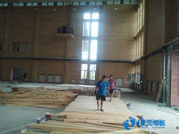 保證體育館木地板結構不因使用的環境溫濕度和時間等因素而發生變化,和家裝木地板相比,目前我國體育體育館木地板尺寸穩定性的研究還不多見,僅有的幾篇也只是在單一結構層材料的尺寸穩定性方面進行了初步的探討,沒有建立起系統的研究體系和研究方向。體育館木地板的各主要結構層材料均為木質材料,具有干縮濕漲的特性,因此,在不同的環境溫濕度的情況下,其結構規格尺寸變化不一致,會影響到體育館木地板的功能,嚴重的將失去體育館木地板特有的功能性,如2001年北京世界大學生運動會的籃球主會場就因體育館屋頂設計時忽略了陽光直射,導致體育館木地板在使用一段時間后出現整體結構的嚴重變形,雖然多次進行維修和更換,但其效果不大,更終采用在體育館屋頂透光處加遮蓋層的方法對體育館木地板進行保護才得以緩解。