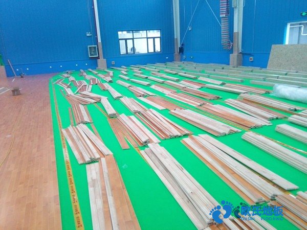 比較常用的就是這三種結構。國內木龍骨通常都是選擇含水量小于18%的松木。夾板墊層,一般選用厚15mm,長2440mm,款1220mm的實木夾板,實木夾板的木材我們可以選用松木或者香杉木進行脫脂、脫水處理。、橡膠墊,減震橡膠墊通常所選的標準為mm,厚度20mm,硬度在65-70之間的較好的橡膠。木墊塊選用松木或夾板,標準為mm,厚度為3mm-30mm,上下面需求平坦、精度差錯為1mm以內(找水平效果)。防潮油氈通常為較好的瀝青油氈、厚度為1mm,有減震防潮效果。專業籃球場木地板結構內容是很全的,正規品牌運動木地板廠家都會嚴格把關。運動木地板市場上的小作坊,還有一些不法商家可不會投入這么多成本。