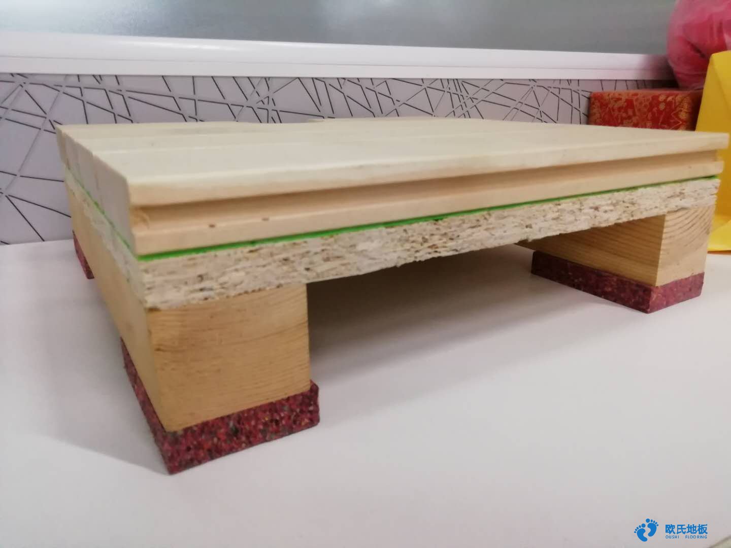 運動木地板單龍骨結(jié)構(gòu)系統(tǒng)包括以下組件(由底層到面層):