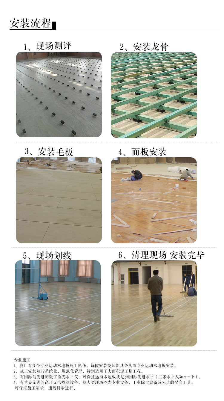 從以上我們可以看出,粗劣的運動木地板鋪裝,會帶來這么問題。業主要選擇專業品牌運動木地板廠家的專業安裝團隊來鋪裝,不要用雜牌軍、游擊隊這樣的粗劣安裝。
